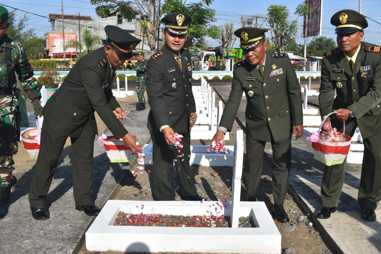 Demak - Komandan Kodim 0716/Demak Letkol Inf Abi Kusnianto memimpin Upacara Ziarah Nasional dalam rangka HUT Ke-74 TNI tahun 2019 di Taman Makam Pahlawan (TMP)Cahaya Ratna Bintarum Kabupaten Demak, Senin (30/9).